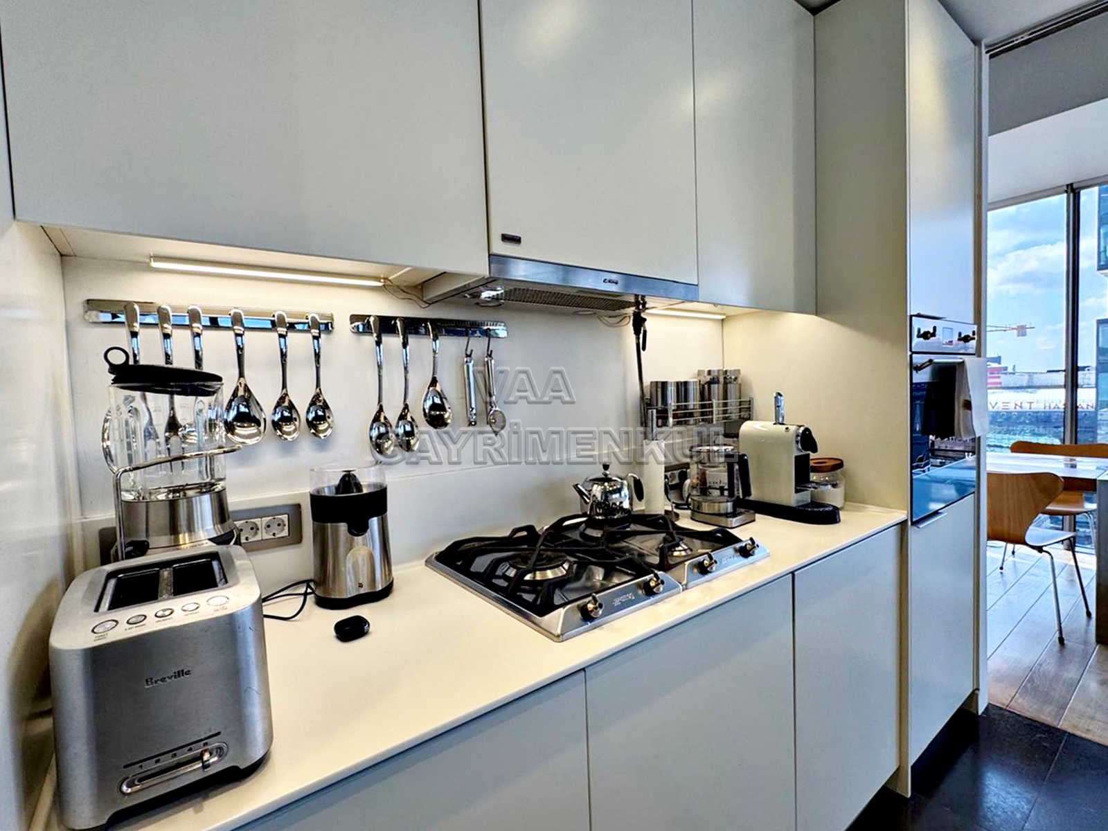 - Mutfak: Kapalı, ankastre beyaz eşyalı (Buzdolabı, bulaşık makinesi, fırın, set üstü ocak, davlumbaz)